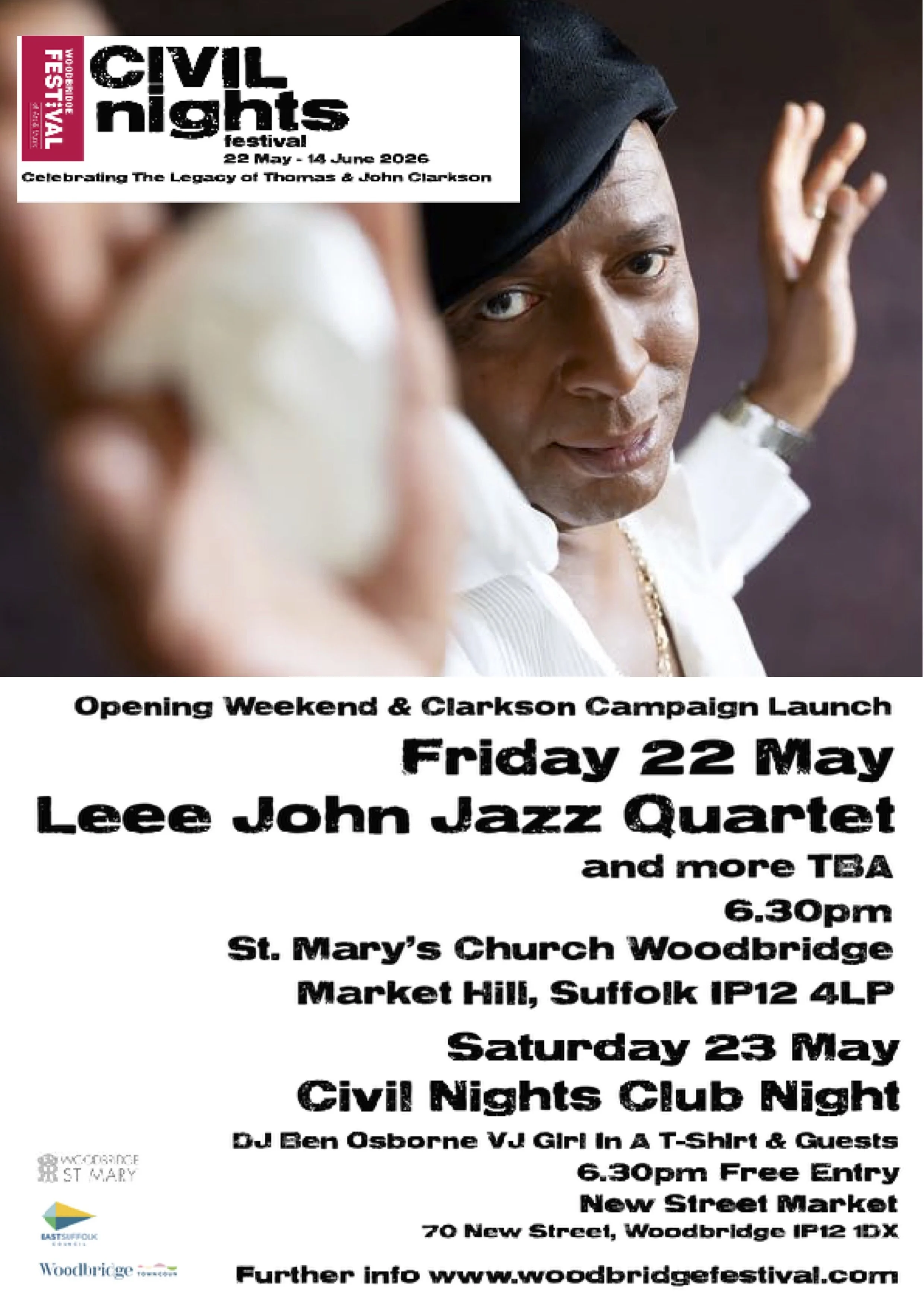 new woodbridge festival event civil nights spring festival starts friday 22 may st mary’s church (TICKETS HERE) and saturday 23 may new street market more tba